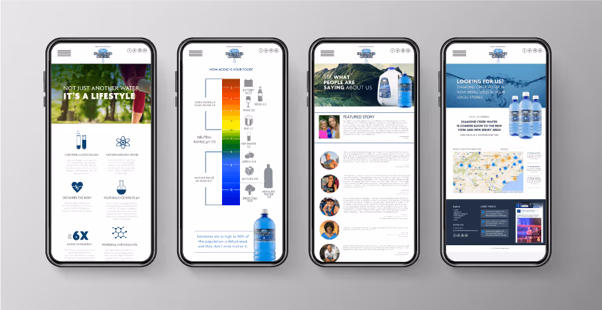 A regional alkaline water brand with real distribution momentum — and a brand system that wasn't built to scale with it. Over an 11-month fractional Creative Director engagement, Diamond Creek went from 232 retail locations to a distribution footprint approaching 2,000 stores, earned a Top 20 IRI ranking in premium water, and attracted an acquisition offer from Good Hemp.